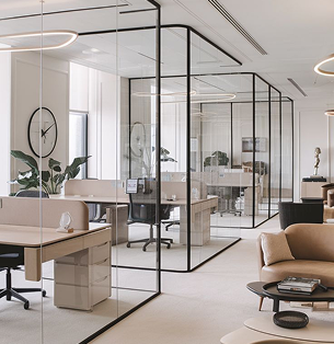 Пропускают свет и визуально расширяют пространство. Подходят для офисов с открытой планировкой, переговорных и кабинетов руководителей. Создают ощущение прозрачности и современного офиса, при этом сохраняют зонирование.