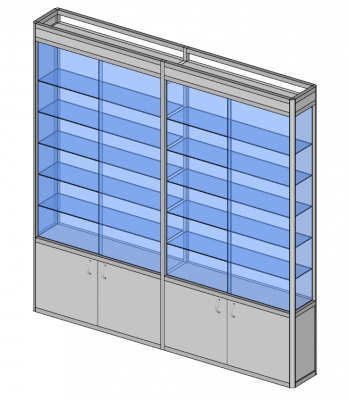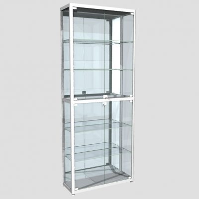 Двухсекционная, все стенки стекло, дверцы распашные, топ и низ – ЛДСПЦена по запросуВитрина из профиля угловая ПР-20